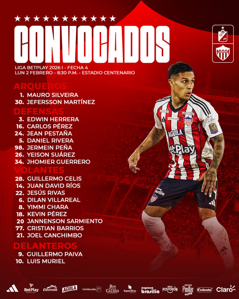 Junior de Barranquilla dio a conocer a sus convocados para su partido contra Deportivo Pereira, que es por la fecha 4 de la Liga BetPlay 2026-1.