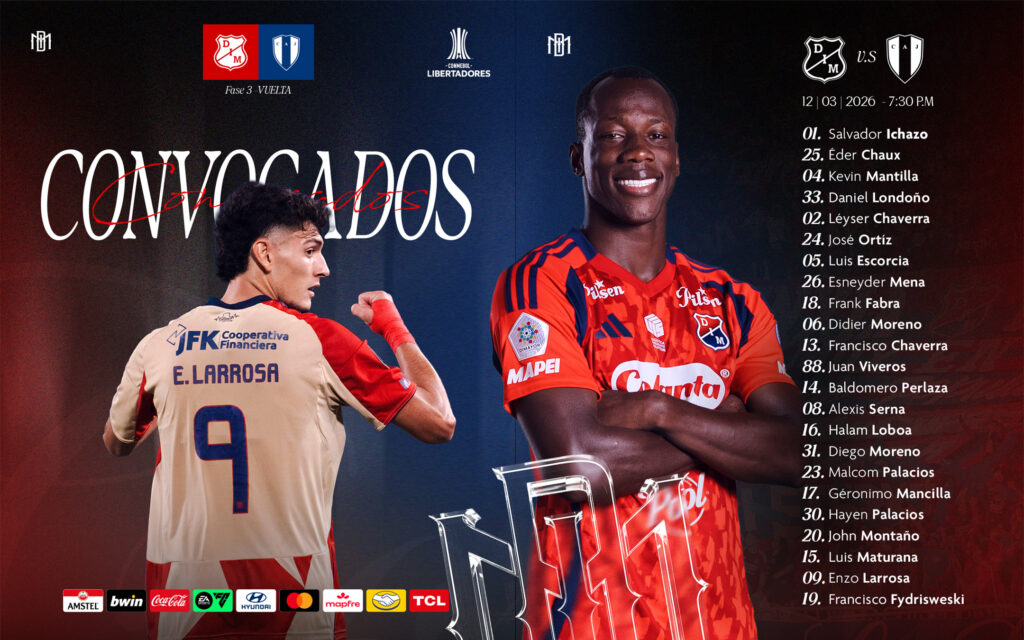 Convocatoria del DIM para el partido de vuelta contra Juventud por la fase 3 de Copa Libertadores